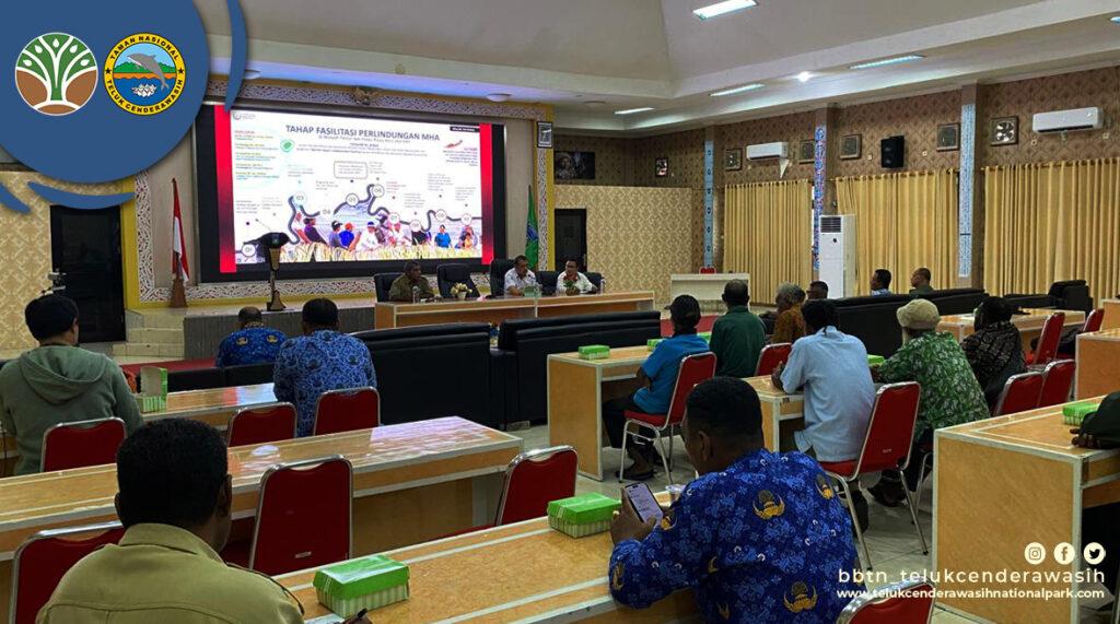 Diseminasi Hasil Identifikasi dan Pemetaan Masyarakat Hukum Adat (MHA) Kampung Menarbu, Selasa (17/6) di Wasior, Kabupaten Teluk Wondama. Kegiatan ini digelar oleh Tim Kerja Masyarakat Hukum Adat dan Masyarakat Lokal, Direktorat Pesisir dan Pulau-pulau Kecil, Ditjen PKRL-KKP, serta dihadiri langsung oleh Bupati dan Wakil Bupati Teluk Wondama.