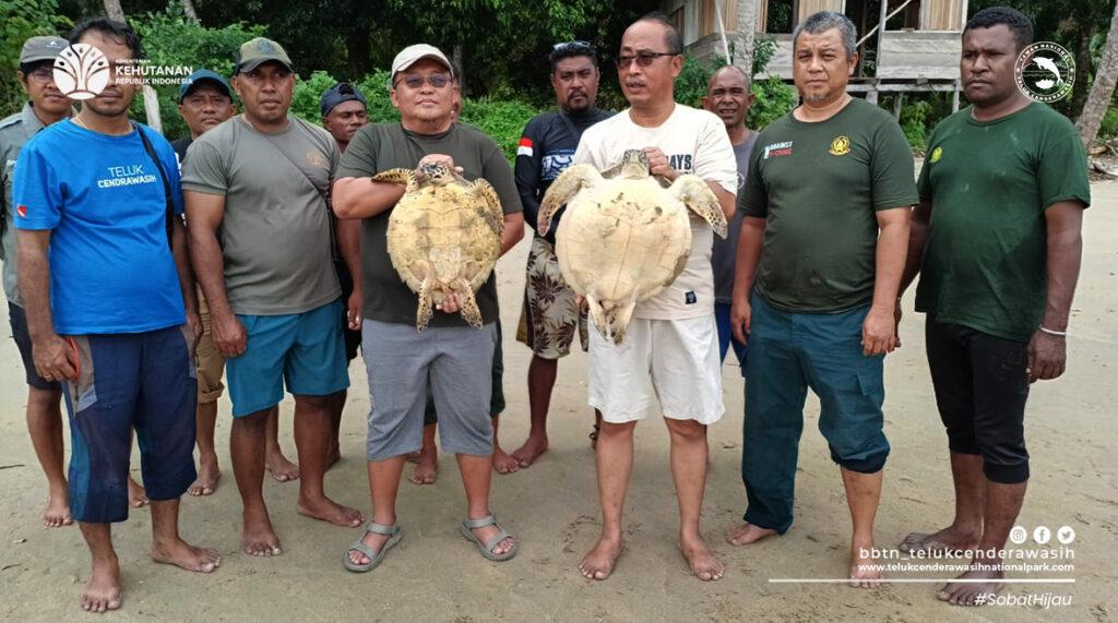 Kepala Balai Besar TNTC (Kababes) bersama Kepala Bidang Teknis (Kabitek), Kabid Wilayah II Wasior, melaksanakan kunjungan kerja ke SPTN Wilayah IV Roon. Berangkat dari SPTN III Aisandami dilepas oleh Kepala SPTN III berserta personel. Setibanya di Roon, rombongan disambut langsung oleh Kepala SPTN IV, Kepala Kampung Mena dan Olof Wonemseba, penerima Kalpataru 2024. Dalam kunjungan tersebut, tim melakukan pelepasliaran penyu hijau (Chelonia mydas) dan penyu sisik (Eretmochelys imbricata) di Kampung Persiapan Rouwno, sebagai langkah nyata pelestarian satwa dilindungi.