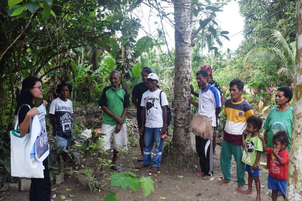 Kegiatan pertama, masyarakat diberi pengetahuan untuk memilah sampah organik dan anorganik. Media sosialisasi yang digunakan yaitu berupa poster. Masyarakat diberi penjelasan tentang sampah organik, yaitu seperti sisa makanan, sayur-sayuran, buah-buahan, daging, ikan, nasi, dan sisa sisa daun ranting pohon, yang nantinya bisa dimanfaatkan sebagai kompos dan pupuk sederhana. Kemudian, dilanjutkan dengan penjelasan mengenai sampah anorganik, yaitu seperti kertas, kaleng dan plastik. Selain itu, masyarakat juga diberikan penjelasan mengenai umur sampah plastik, berapa lama waktu yang dibutuhkan agar sampah plastik tersebut dapat terurai di alam. Setelah pemberian materi, masyarakat pun diajak untuk mengumpulkan sampah-sampah plastik yang ada disekitar lingkungannya. Sampah plastik yang dikumpulkan tersebut rencananya akan dijual kepada pengepul sampah plastik dan beberapa diolah menjadi kerajinan tangan. Di akhir kegiatan, tim polhut, peh dan penyuluh SPTN Wilayah III Aisandami memberikan tas kain (goodie bag) kepada masyarakat, sebagai bentuk dan ajakan untuk mengurangi pemakaian kantong plastik saat berbelanja di kios.