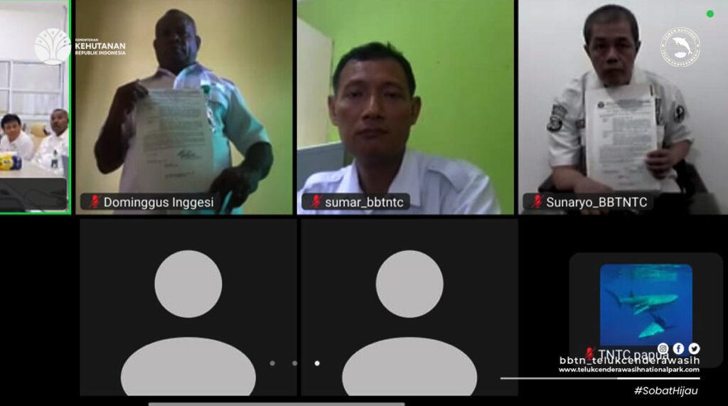 Serah terima jabatan pejabat struktural lingkup Direktorat Jenderal Konservasi Sumber Daya Alam dan Ekosistem (Ditjen KSDAE) pada Balai Besar Taman Nasional Teluk Cenderaweasih antara Kepala Seksi Pengelolaan Taman Nasional Wilayah V dan Kepala Seksi Pengelolaan Taman Nasional Wilayah VI dilaksanakan secara hybrid, Selasa, (6/1/2026). Kegiatan ini dipimpin oleh Kepala Balai Besar, A.G Martana, yang dalam arahannya mengingatkan pentingnya selalu bersyukur kepada Tuhan Yang Maha Esa serta mengabdi kepada instansi dengan sebaik-baiknya. Dan juga menyampaikan apresiasi dan terima kasih atas dedikasi kedua pejabat selama melaksanakan tugas di tempat sebelumnya.